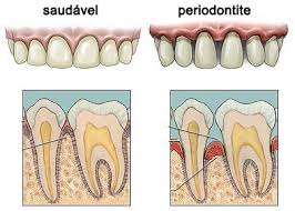 aspecto da dentição saudável (esq) e com periodontite (dir)