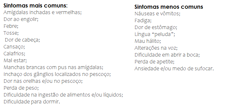 Além da dor de garganta, que é um sintoma característico da amigdalite, a doença ainda pode ser caracterizada por diversos outros, divididos em mais e menos comuns: