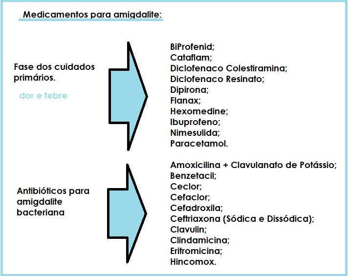 Sendo a amigdalite viral ou bacteriana, os cuidados primários para a doença são os mesmos para todos os pacientes. Contudo, quando a causa é uma infecção bacteriana, antibióticos podem ser receitados para que o agente causador seja eliminado do organismo com maior eficácia.
