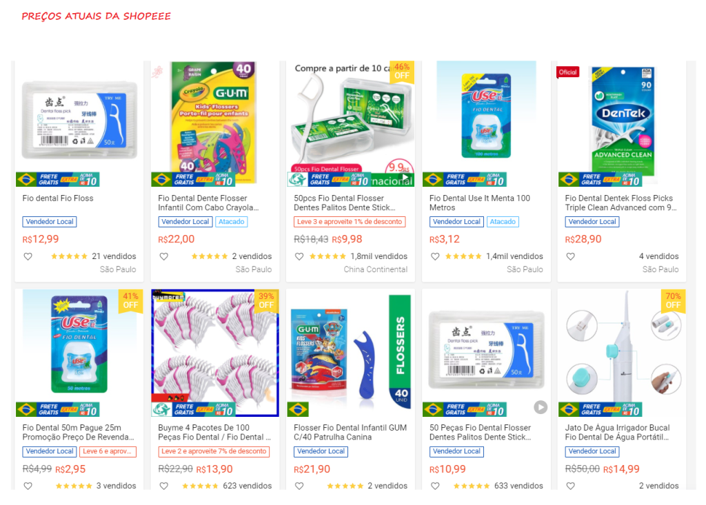 Quando estive nas Filipinas o preço de um pacote de fio dental desses beirava 1 dólar americano. Sim, comprei vários; a louca dos fios dentais. A compra por sites como shopee e afins compensa bastante.